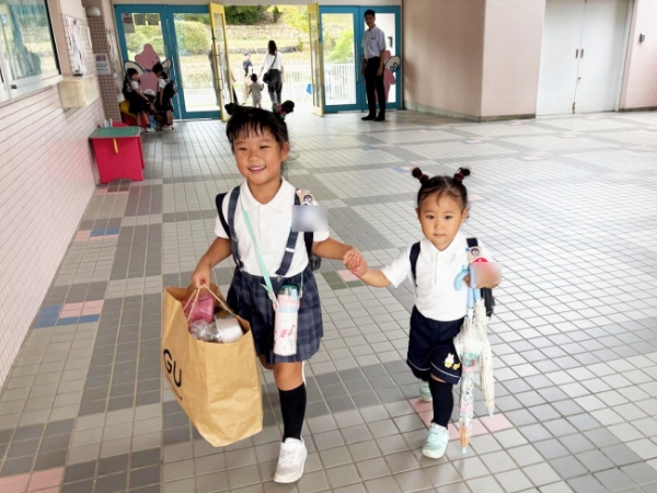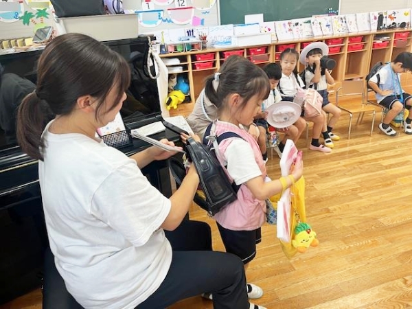 先生やお友達にさようならのあいさつをする