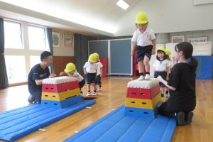 幼児体育の専門教師が、「明るく」、「楽しく」、「元気に」をモットーに総合的な体育指導を行い、体力と運動能力の向上をはかり、健康な体と健全な心を育てます。